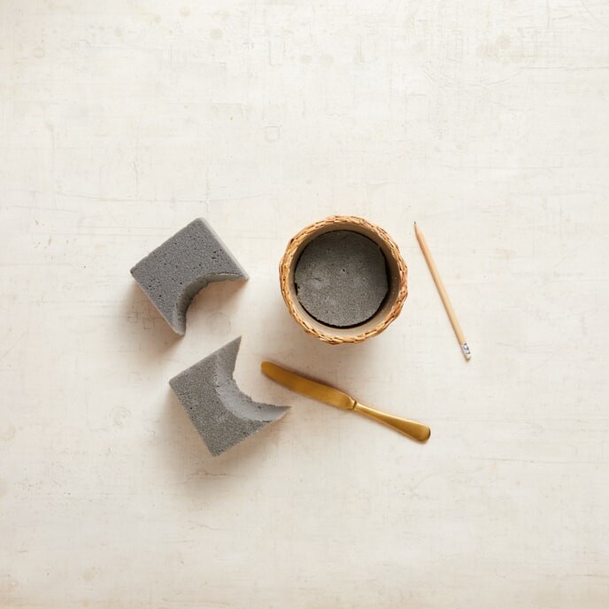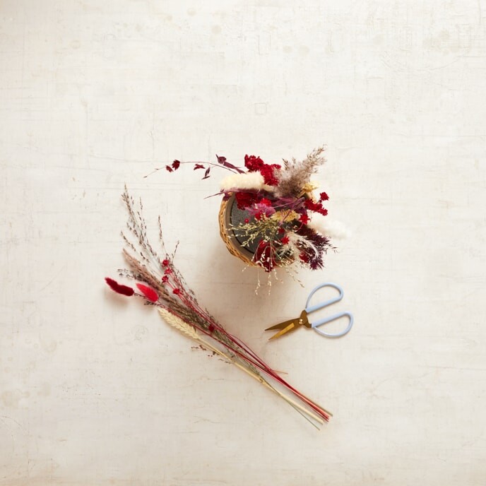 Schneide die Steckmasse mit dem Messer zurecht und fülle den Korb damit aus.