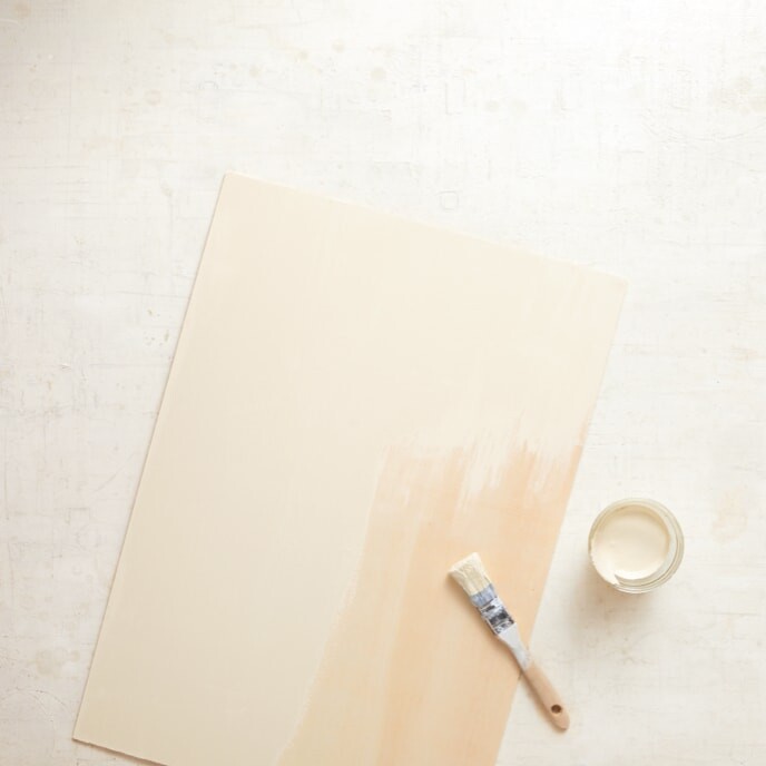 Grundiere die Holzplatte mit der weissen Farbe und lasse sie trocknen.