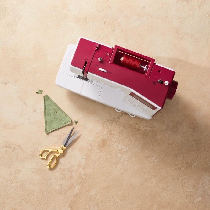 Nähe nun mit der Nähmaschine (oder per Hand) mit etwas Nahtzugabe einmal rundherum. Lasse an der unteren Seite ca. 5 cm offen. Damit die Nahtzugabe beim Wenden nicht stört, kürze alle drei Ecken um ca. 1 cm.