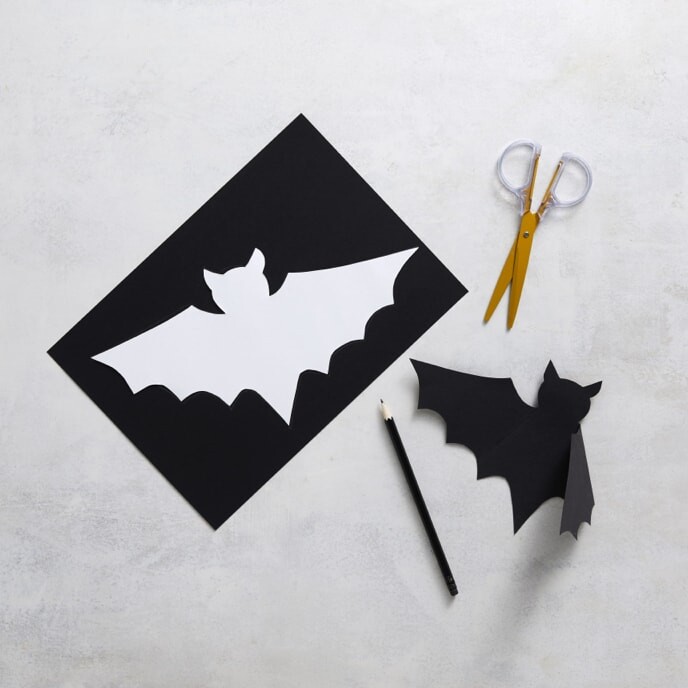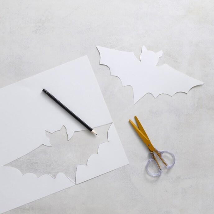 Dessinez au crayon une chauve-souris sur une feuille de papier blanc cartonné, puis découpez-la.