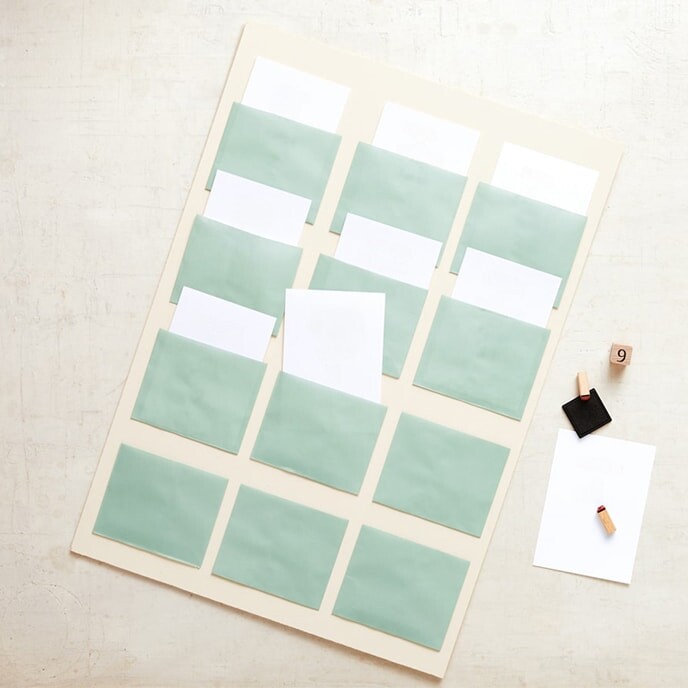 Fixez les enveloppes à intervalles réguliers sur le panneau avec le ruban adhésif double face.